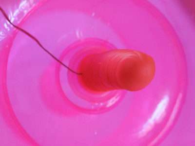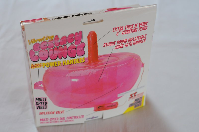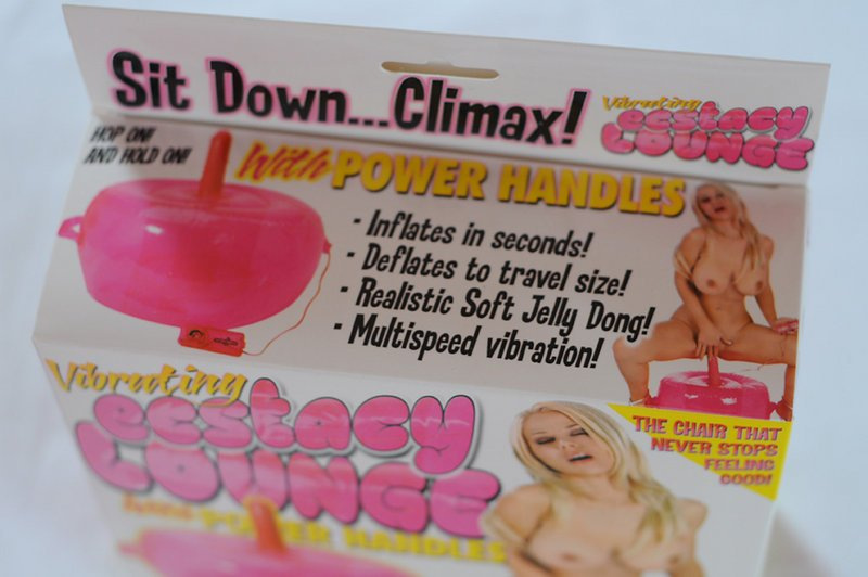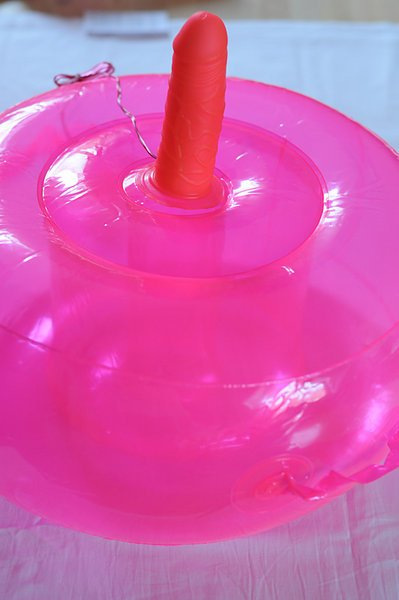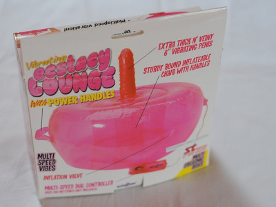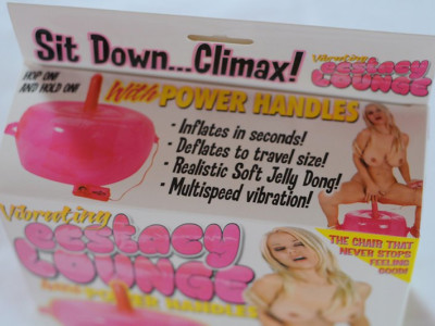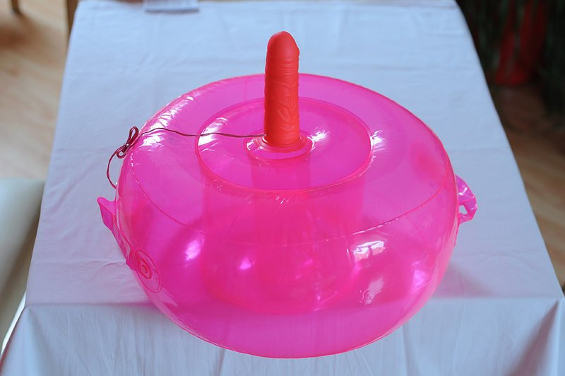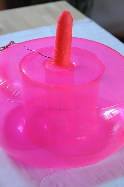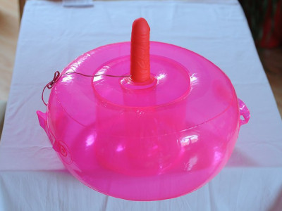 Zajímavá hračka svým nápadem. Nafukovací oválný podstavec pro trčící vibrující dildo s regulací ovladačem na kablíku slouží jako pružné sedátko.