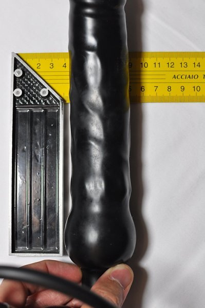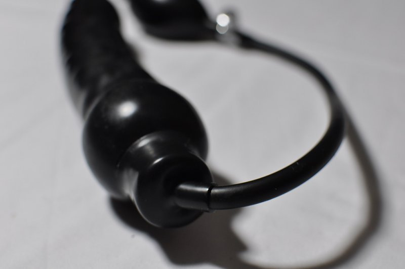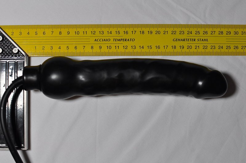 Testování nás vcelku příjemně překvapilo. Latexové dildo je vyrobené slušně. Materiál je dostatečně silný a dildo se do určitého stádia nafukuje rovnoměrně. Použitím silikonového lublikantu lze docílit mnohem lepší kluznosti než s klasickými silikonovými vibrátory a gely na vodní bázi. Zasunutí dovnitř vagíny jde snadno, postupné dofukování je vcelku velmi příjemný a zajímavý pocit. Pohybování s nafouknutým dildem vevnitř mě vcelku rychle udělalo. Vytažení a úleva se u mě perfektně spojila s uvolněním po orgasmu. Co dodat, nejsem zastánkyní velkých hraček, ale tohle je trošku něco jiného. Vyplnění až vevnitř je pro mě mnohem příjemnější než zasunování obrovského dilda.