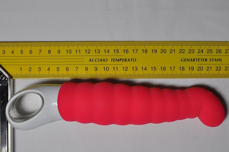Naproti tomu vibrace se celkem málo přenáší do silikonového těla. Silnější vrčení je cítit pouze uprostřed mezi špičkou a očkem k držení. Také je škoda, že není žádná další větší varianta s délkou kolem dvaceti centimetrů.