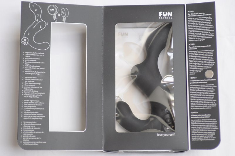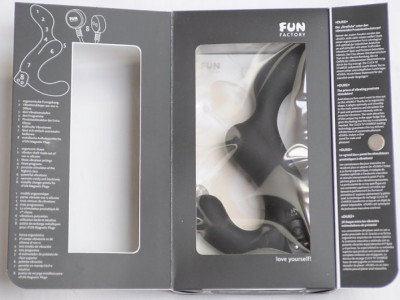 Po dlouhém čekání jsme se konečně dočkali análního vibrátoru pro dráždění prostaty od špičkové firmy Fun factory. Jak již u nich bývá zvykem, nespokojili se jen s kopií podobných vibrátorů a přišli se zcela novým tvarem. Abych řekl pravdu, musel jsem se podívat do návodu, abych zjistil jak hračku zasunout. Překvapil mne také zcela vyjmutelný vibrační váleček ze silikonového pouzdra. Tak hurá s ním na starou dobrou magnetickou nabíječku, kterou můžete samozřejmě použít z jiných fun factory hraček nebo ji musíte přikoupit k vibrátoru.httpv://www.youtube.com/watch?v=DplHpxI4erc
