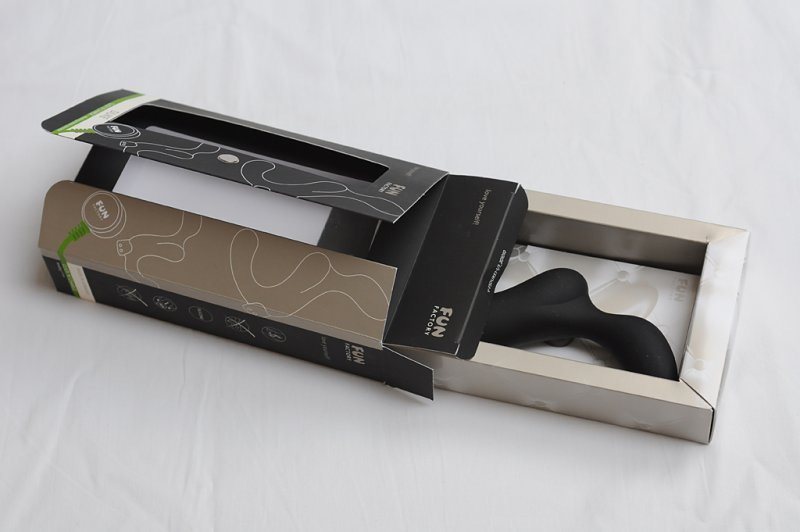 Netypický tvar mě lákal a tak jsem nemohl nechat hračku dlouho čekat v šuplíku. Dostatečně lublikovaný silikon jsem pře svěrače pomalu zasouval do análu. Střední vibrační má o něco větší průměr a relativně ostrá zatáčka vyžaduje přiměřenou zručnost. Po zasunutí je váleček svisle a při sednutí třeba na židli výborně zajede kam má. Trošku jsem doufal, že hračka bude držet na místě sama, je to sice lepší než u Bad boye, ale pořát pomalu vyjíždí. Sezení na židli nebo přidržování rukou se nevyhnete. Myslím, že větší roztažení svěračů rozhodně není na škodu, vibrace jsou mnohem lépe cítit nejen na prostatě. Zahnutí pod varlata lépe umožňuje vibrátor přidržovat, nicméně vibrace se do tohoto konce příliš nepřenáší. A výsledek: rozhodně fajn hračka a při masturbaci. Dráždění v análu a na prostatě spolu s mnutím penisu je pro mě nepřekonatelná kombinace. Taky se mi líbí jednoduché čištění a údržba, myslím, že můžu Fan Factory opět doporučit.