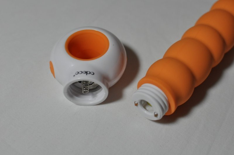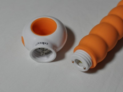 Vibrátor je vcelku dobře zpracovaný. Tvar je přizpůsoben spíš snadnějšímu vnikání. Velmi praktické je držátko, díky kterému je zasunování a kroužení uvnitř vagíny přirozené a pohodlné. Jako výtku tomuto hezkému oranžáku chci uvést horší spojení plastu se silikonem. Šroubovaný spoj, který slouží k vložení baterií se bude hůře čistit a také se občas povoluje. Ovládání je jednoduché. Jedno tlačítko přepíná nejprve intenzitu a potom programy. Ty jsou sice zajímavější než u jiných firem, ale mě stejně nejvíce funguje první stupeň plynulých vibrací. Motor je dostatečně silný a díky umístění se vibrace dobře přenáší do celého těla vibrátoru.