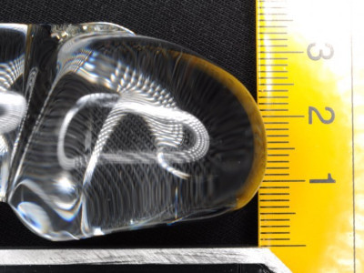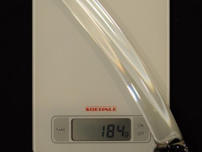 Jak vidíte na dalším obrázku dildo je celkem těžké. Váží celých 185g a při manipulaci s ním, zvláště pak pokud je potřené lublikantem doporučujeme opatrnost, může vám lehce vyklouznout a spadnout třeba na nohu, což dost bolí :-)K tomuto nádnernému kousku skla, který padne krásně do ruky, dostanete také hezký semišový vak vhodný k uchování výrobku pokud není používán.