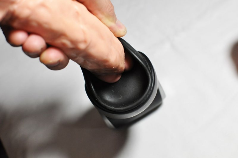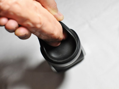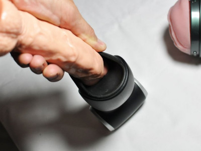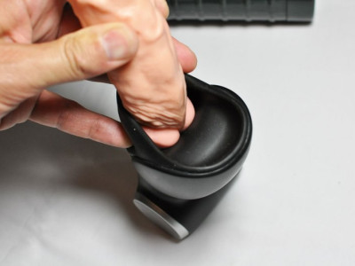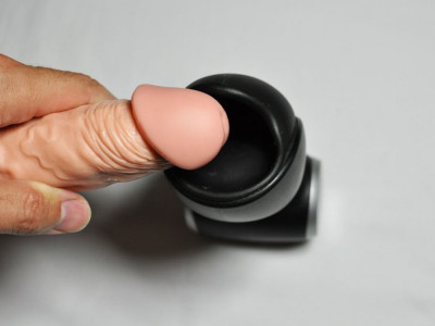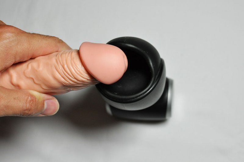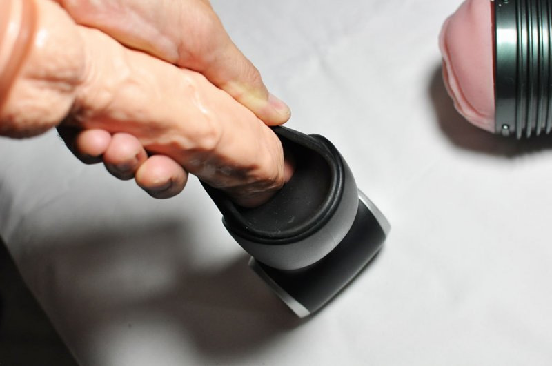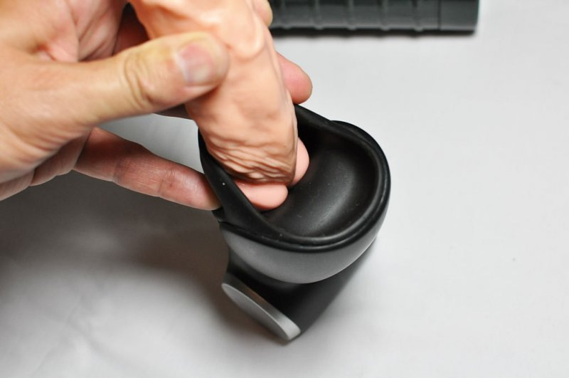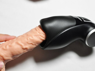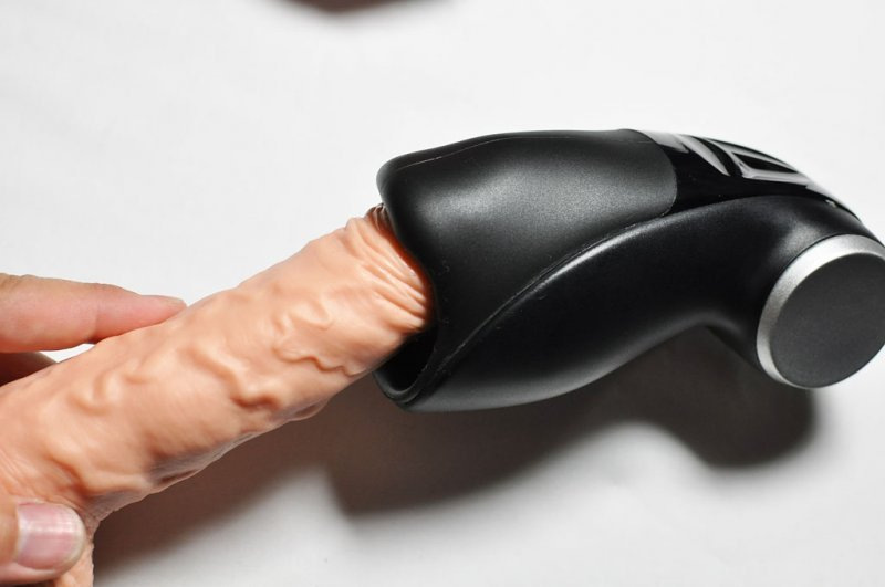 Abych se přiznal, tuto hračku používám mnohem častěji. Hlavně kvůli rychlosti, jednoduchosti jak použití tak i čištění. Do silikonové manžety se strčí pouze žalud, lze to i bez lublikantu, potom se zapnou vibrace na libovolný program a intenzitu. Silikonový hrbolek na spodní části žaludu se rozvibruje a dráždí pouze, ale zato intenzivně uzdičku. Jsem na toto dráždění citlivý a ejakuluji velmi rychle, často hračku používám i několikrát po sobě po krátké pauze.