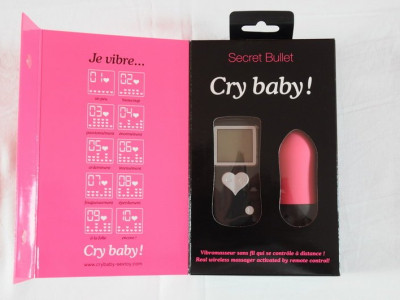 Vibrační vajíčko Bullet Cry Baby je vkusné jak barevně tak i provedením. Strkají se do něj dvě mikrotužkové baterie a na závitu je gumové těsnění, takže lze říci, že je vodotěsnosné. Má pěkný tvar a ve vagíně celkem dobře drží. Vibrace lze regulovat na dálkovém ovládání s LCD displejem a rádiovým přenosem. Funguje tedy i například přes zeď. Dálkové ovládání zobrazuje stav v jakém je vibrační vajíčko a stupeň intenzity počtem srdíček. K dispozici je celkem 10 stupňů intenzity. V dálkové ovládání je malá 12V baterie do automobilových dálkových ovladačů. Jelikož vajíčko nemá vypínač, asi kvůli těsnosti, uskladňovali jsme jej rozebrané, aby se baterie nevybíjeli. Po celou dobu co vajíčko testujeme nám postačili jedny baterie. Do vajíčka lze použít i běžné nabíjecí akumulátory.